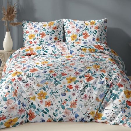 Komplet pościeli z bawełny satynowej to połączenie naturalnej jakości i elegancji, stworzone z myślą o komforcie snu. Wykonany z wysokogatunkowej 100% bawełny o splocie satynowym, zachwyca miękkością i delikatnością w dotyku. Wzór subtelnych kolorowych kwiatów dodaje wnętrzu przytulności i świeżości, idealnie komponując się z aranżacjami w stylu rustykalnym, skandynawskim czy boho.