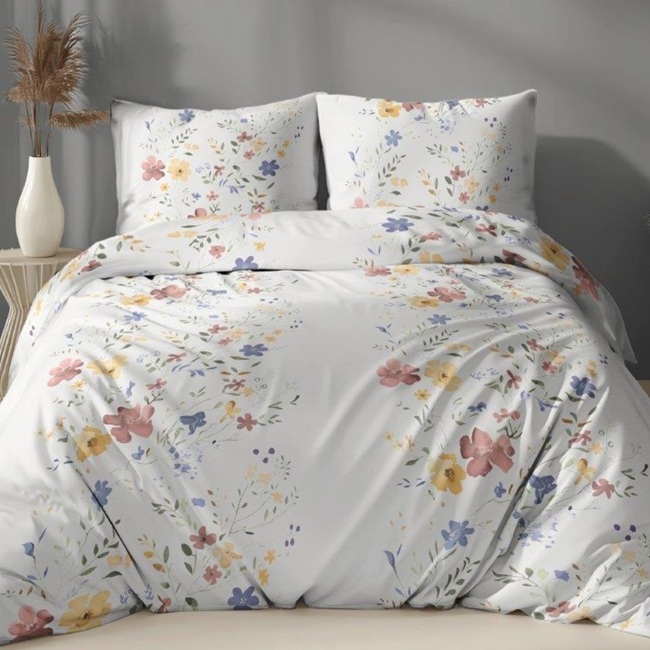 Komplet pościeli z bawełny satynowej to połączenie naturalnej jakości i elegancji, stworzone z myślą o komforcie snu. Wykonany z wysokogatunkowej 100% bawełny o splocie satynowym, zachwyca miękkością i delikatnością w dotyku. Wzór subtelnej, kwitnącej łąki dodaje wnętrzu przytulności i świeżości, idealnie komponując się z aranżacjami w stylu rustykalnym, skandynawskim czy boho.