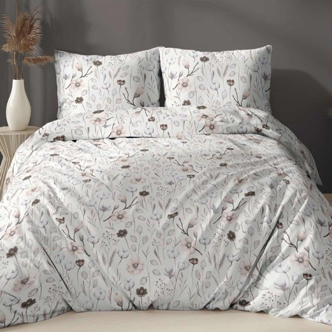 Komplet pościeli z bawełny satynowej to idealne połączenie naturalnej jakości i elegancji. Wykonany z wysokogatunkowej 100% bawełny o splocie satynowym, zapewnia niezrównany komfort snu i delikatność w dotyku. Subtelny biało-różowy i ecru - beżowy wzór w kwiaty nadaje pościeli wyjątkowy urok, który sprawdzi się w każdej sypialni – od stylu skandynawskiego po glamour.