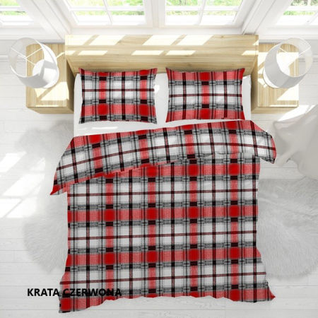 Komplet pościeli Kora 160x200 + 2x70x80 z nowoczesnym wzorem geometrycznym w kratkę to idealne rozwiązanie dla osób ceniących styl i harmonię w sypialni. Precyzyjne linie, figury i kontrastujące kształty nadają wnętrzu eleganckiego charakteru, który świetnie wpisuje się w najnowsze trendy wnętrzarskie. To doskonały wybór zarówno do minimalistycznych aranżacji, jak i bardziej klasycznych przestrzeni, którym geometryczny wzór doda świeżości i wyrazistości.