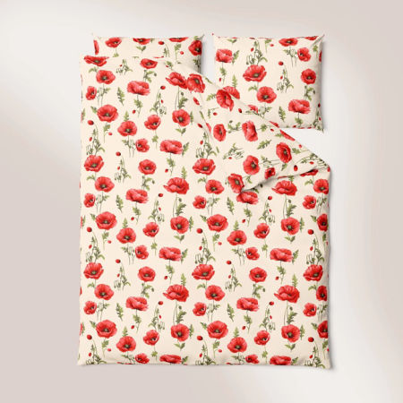 Komplet pościeli Kora 160x200 + 2x70x80 dostępny z motywem czerwonych maków polnych na białym i kremowym tle to doskonałe połączenie klasycznej elegancji z wygodą użytkowania. Wzory inspirowane naturą wprowadzają do sypialni harmonię i świeżość, a dzięki wysokiej jakości kory bawełnianej możesz cieszyć się trwałym i pięknym wyglądem pościeli przez długi czas.