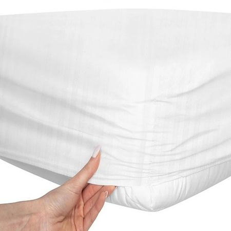 Prześcieradło adamaszek - białe z gumką wszytą wkoło.